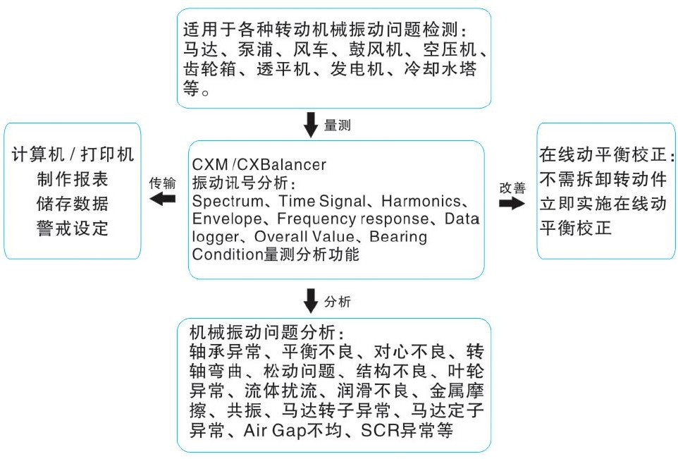 MaintTechCXB 運用在:各種測試臺檢測,軸承檢測,電機平衡檢測等轉動設備分析動平衡的解決