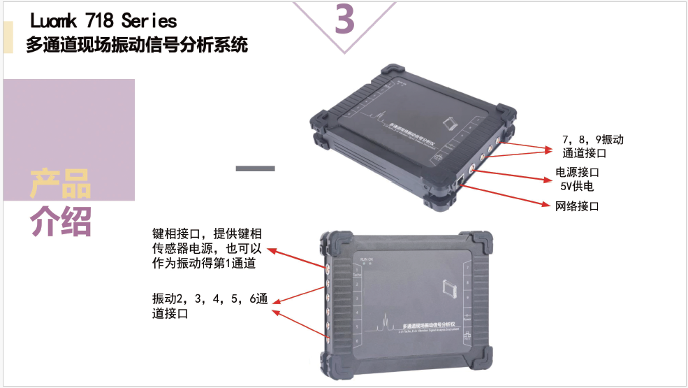 Luomk718系列是一款便攜式、多功能機械設備健康狀態分析與故障診斷儀器。他集振動信號采集與分析與一體,配合Luomk718 Software實現機械設備現場故障診斷與動平衡功能。它采用同步AD對所有通道數據進行高速同步采樣。正負25電壓輸入范圍、每通道IEPE電流供電可選,適合加速度、速度、電渦流、力等各類傳感器。自帶大容量電池和WIFI模塊,工程師可以輕松實現現場各種設備與工況的振動信號測量與故障診斷服務。支持4G無線網絡傳輸和大容量存儲,可以實現人機分離,遠程監控功能。Luomk718集數據采集、實時分析顯示和歷史數據回放于一體,是振動分析工程師、設備檢修和高校研究人員的最佳選擇。